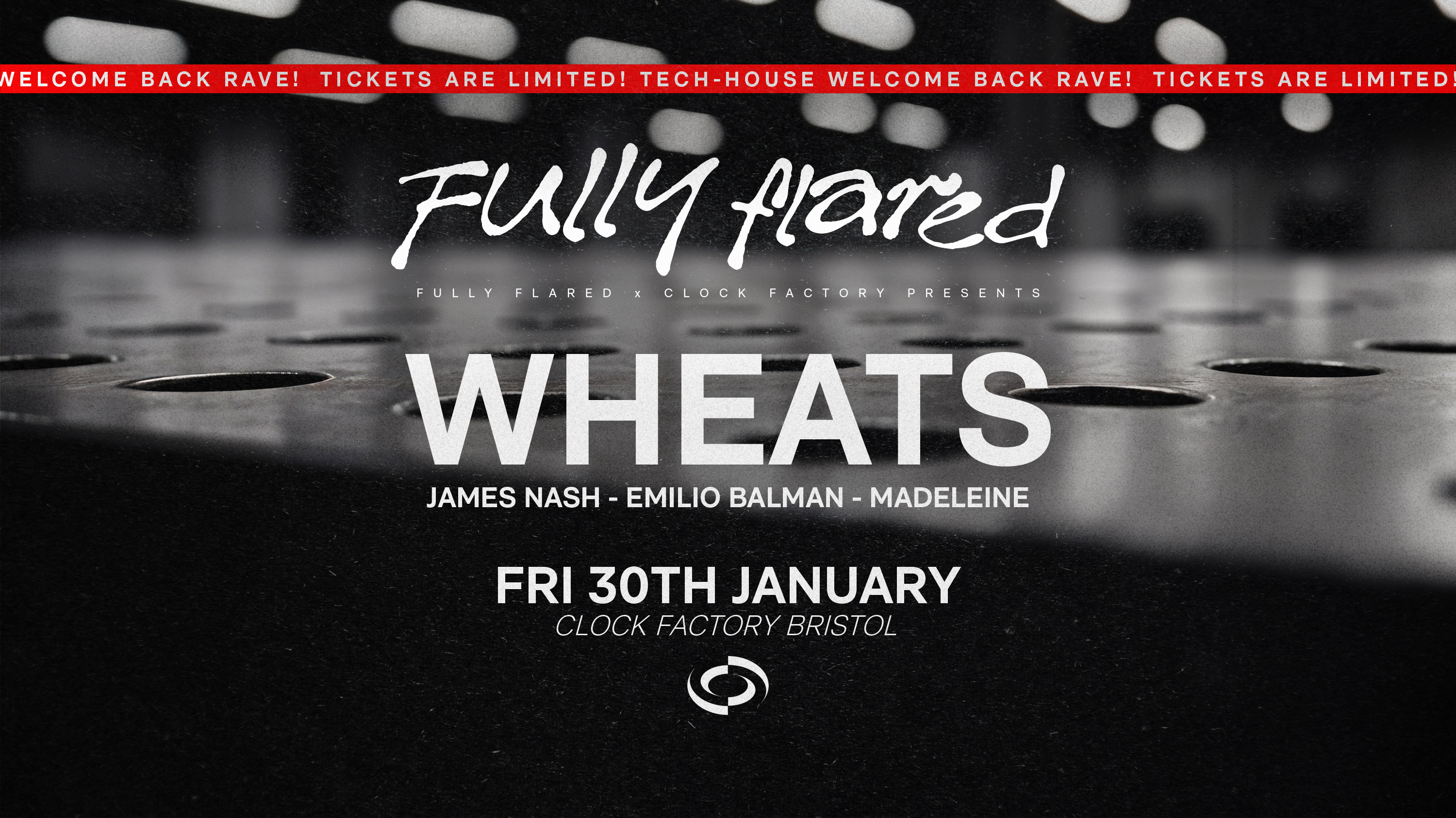 Fresh from a sold-out warehouse show with his brand Box-Red, and a year packed with standout sets at Drumsheds, Warehouse Project, Amnesia, UNVRS and DC-10, Wheats returns to Fully Flared at Clock Factory on Friday 30th January for an exclusive 2-hour headline set.