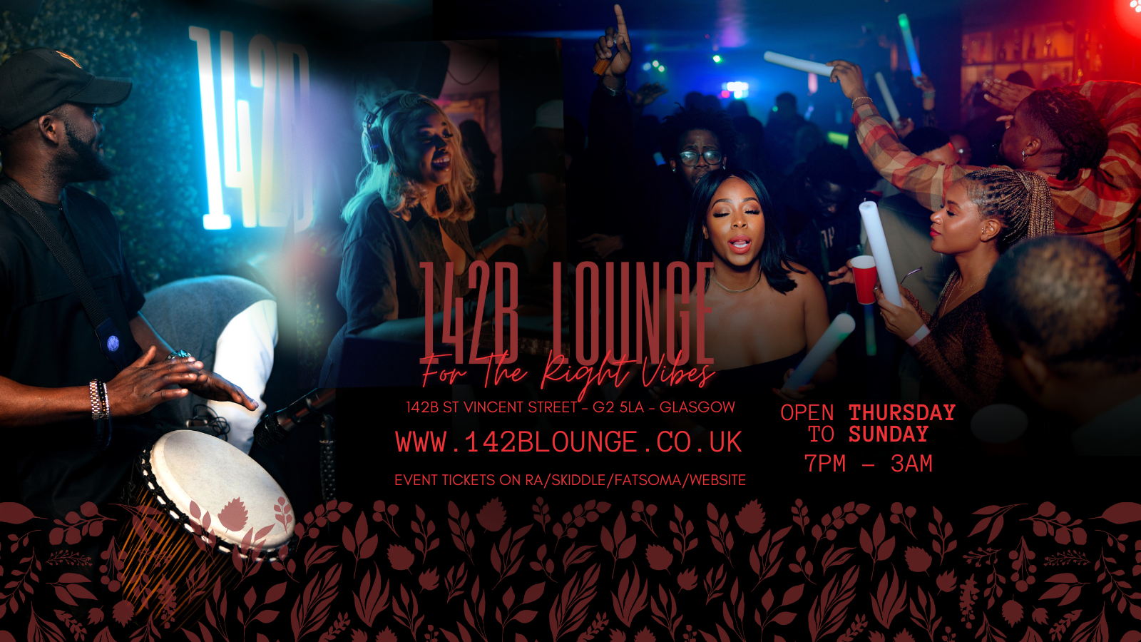 Get ready to turn up the heat at 142B Lounge, the new spot that's about to drop the hottest vibes in Glasgow. We're talkin' top-shelf Afrobeat, Amapiano, Dancehall, Hip Hop, and R&B beats, curated by the finest DJs in town. 142B Lounge is the only spot in Glasgow dedicated to these upcoming genres, so you know it's gonna be lit.