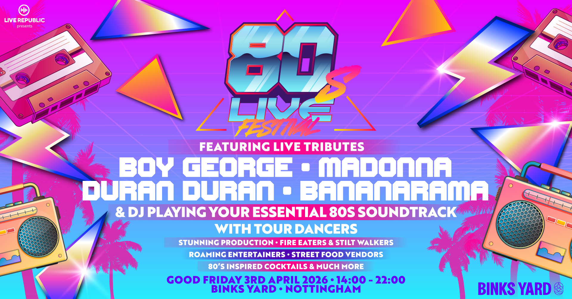 Featuring Live Tribute to Boy George, Madonna, Duran Duran and Bananarama. As well as, DJs playing 80s dance floor anthems to forgotten favourites! 🪩✨