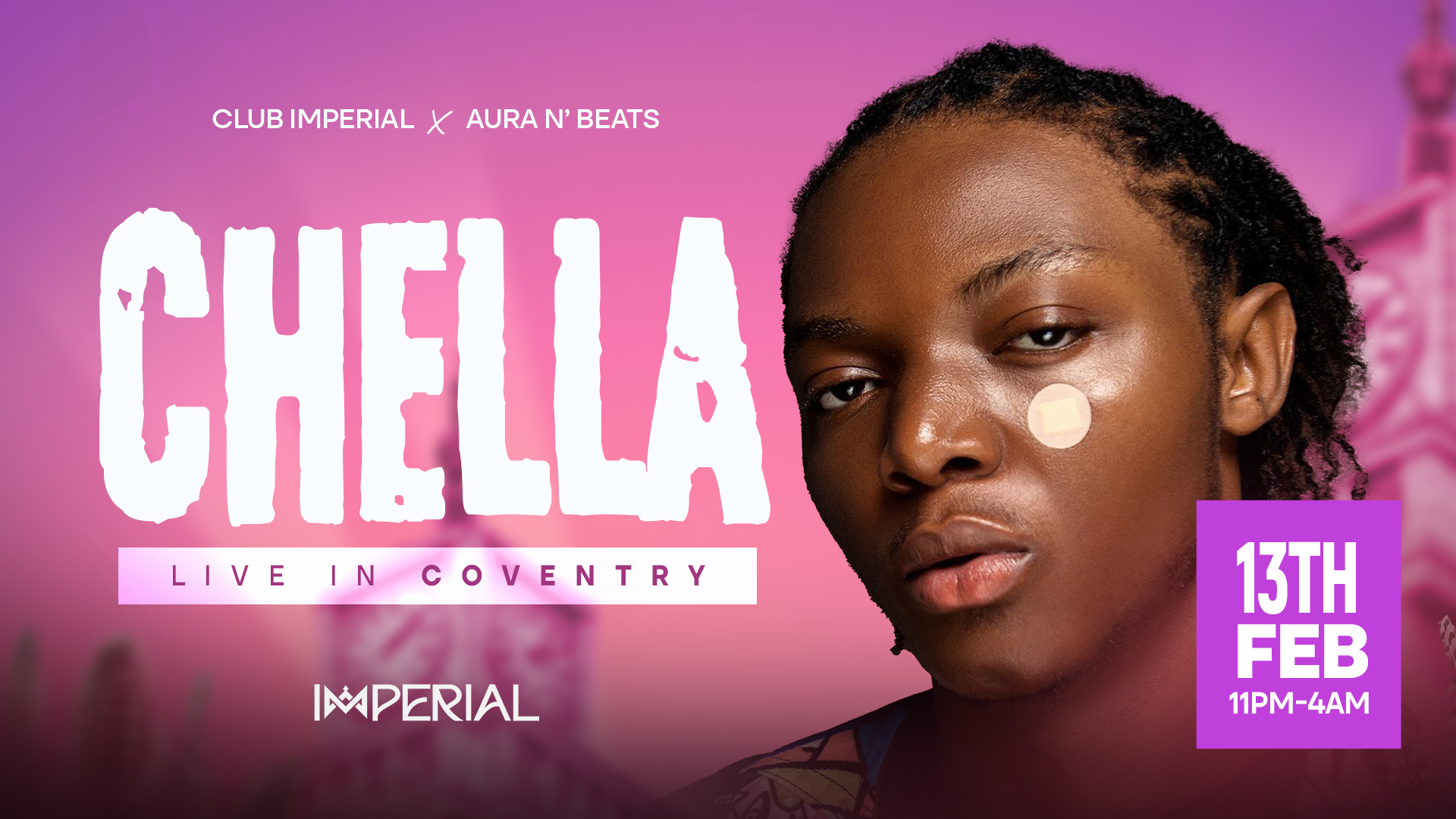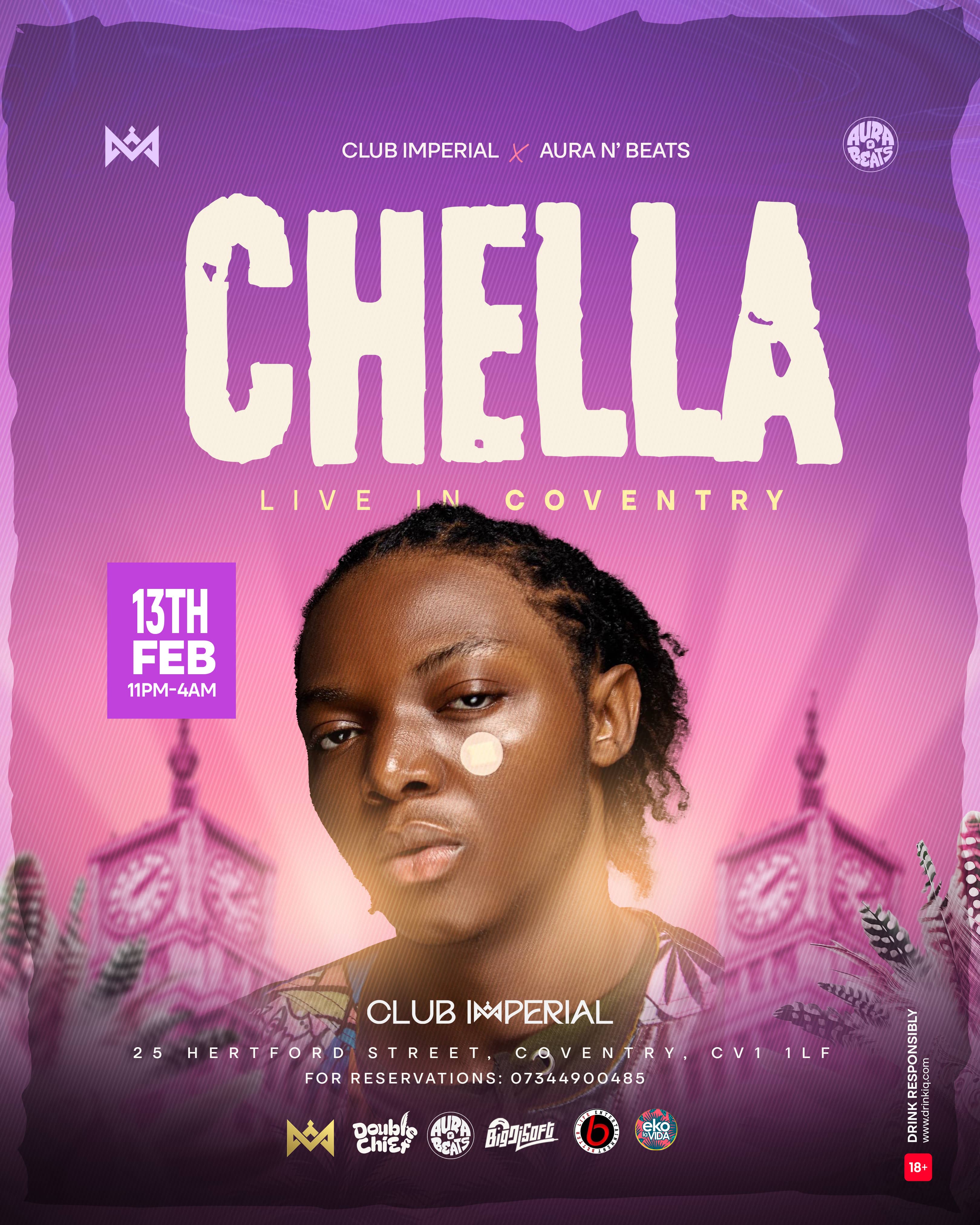 Afrobeats sensation and “My Darling” crooner Chella is set to light up the city LIVE as we unveil Club Imperial! (Former Catch Twenty Two lounge), Coventry's newest nightclub, inspired by Afro lifestyle.