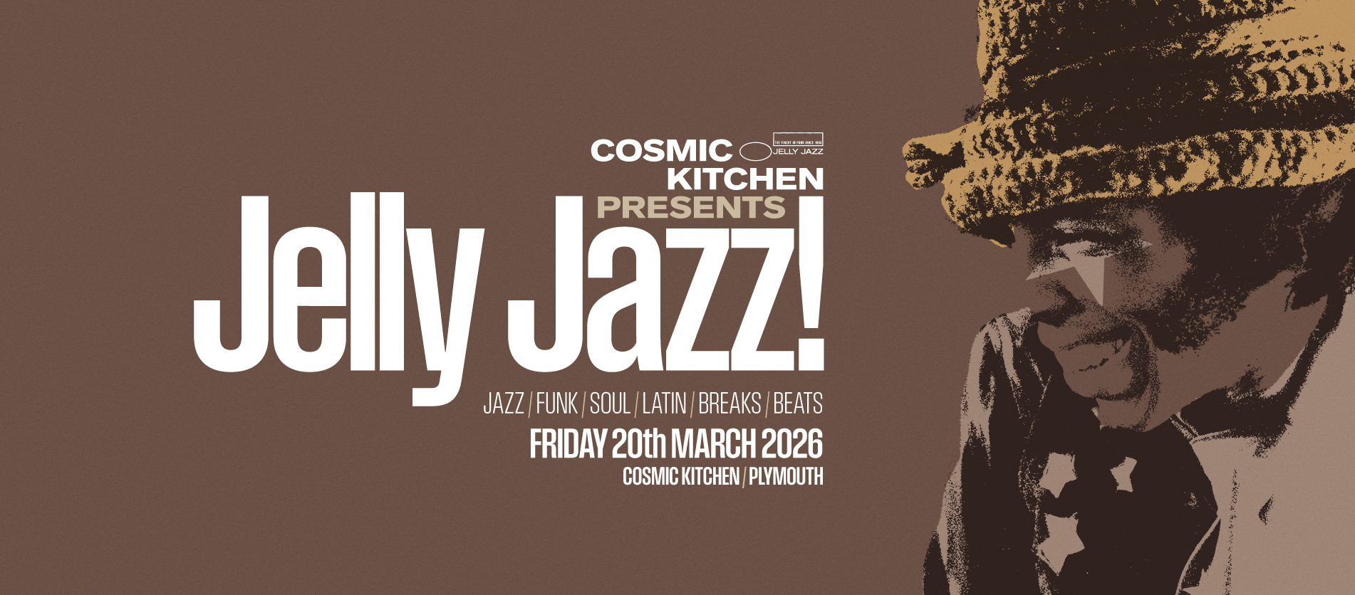 The irrepressible Jelly Jazz is back in Plymouth for its regular(ish!) session at the wonderful Cosmic Kitchen. Now in its 32nd year of playing just the best music...jazz, funk, soul, latin, breaks, and beats, original jelly main man pete playing all night long ruling the decks, digging deeeeep into the vinyl collection, and dishing up a pure bowl of Jelly! Proudly old school, it's 100% vinyl at Jelly Jazz. Nothing beats the crackle of a rare 45, or an obscure but utterly funky track lurking on the B side of an album, or a bang-up-to-date 12" single of Afro beats, it all goes into the bag, celebrating music in all its glory. No laptops here! It's all about a funkin' good time! See you on the dancefloor