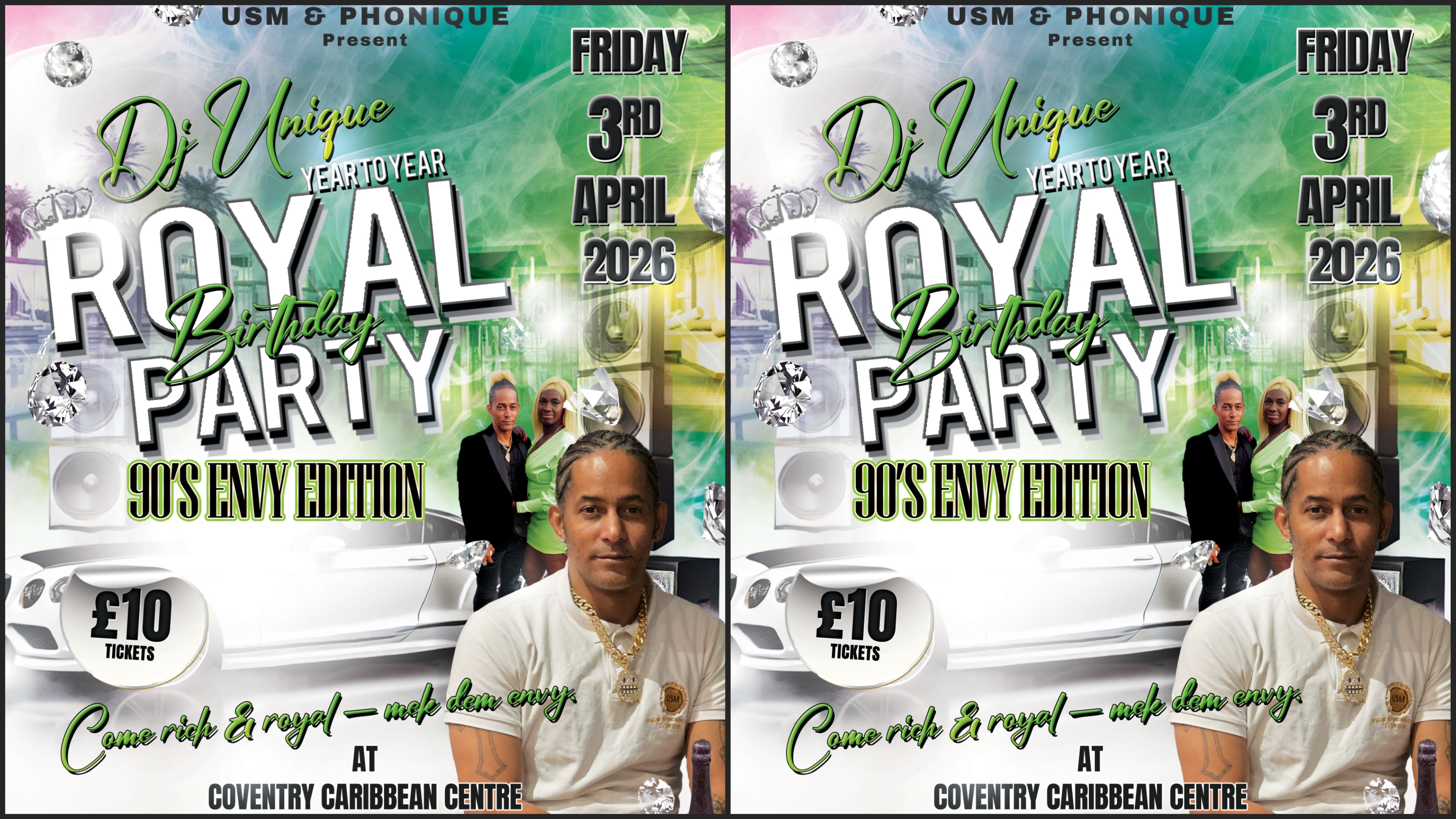 Step into royal energy as DJ Unique celebrates another year in style at his Royal Birthday Party — 90’s Envy Edition.
