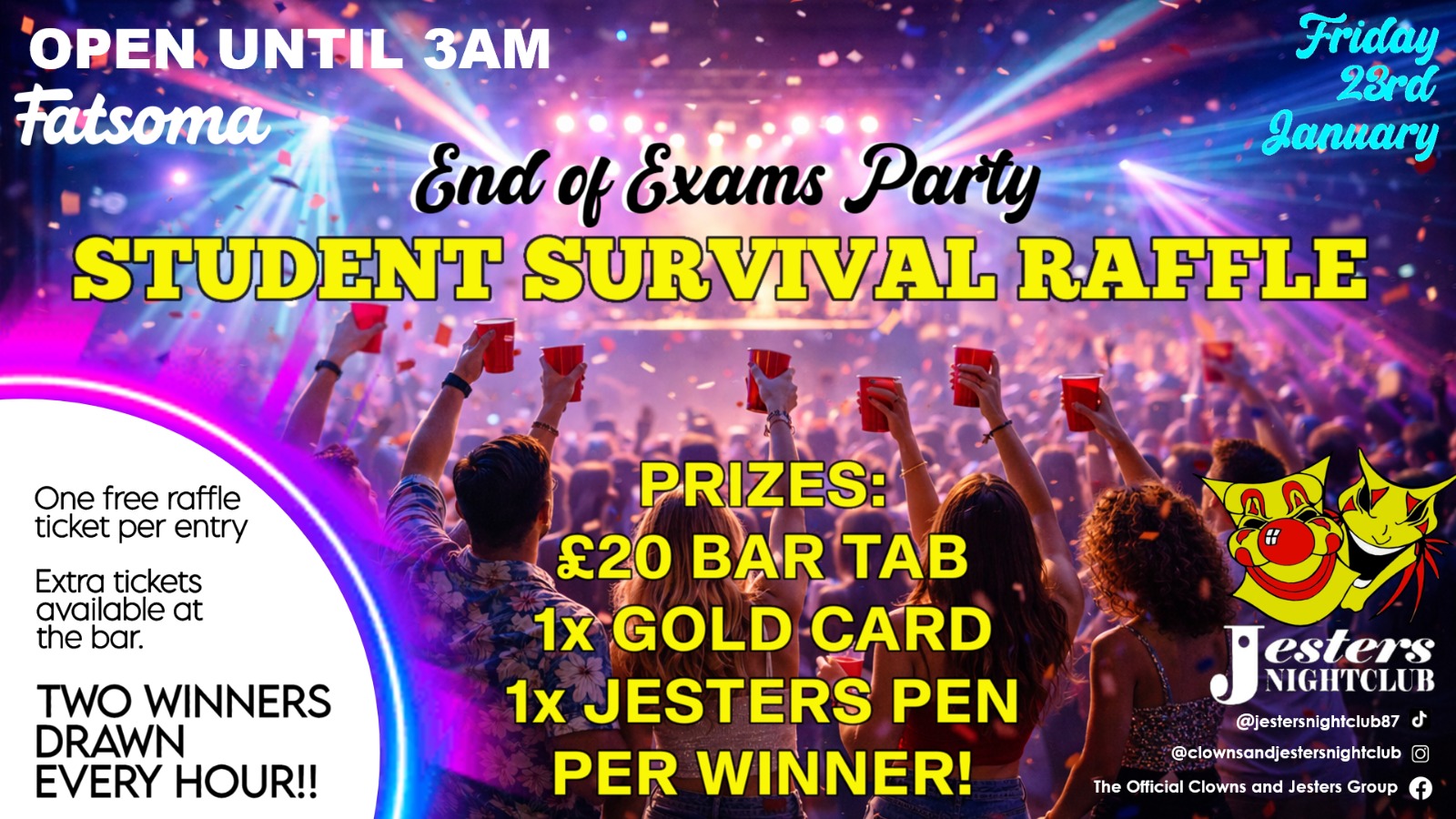 We’re celebrating the end of exams with a Student Survival Raffle running all night.