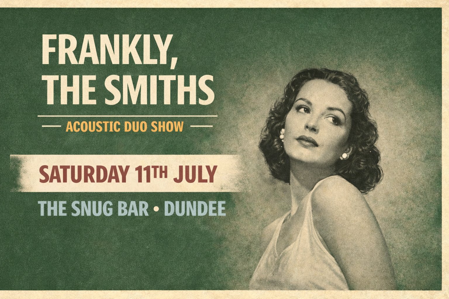 Frankly, The Smiths (Acoustic Duo Show) The Snug Bar Dundee. Saturday 11th July £12.00 +