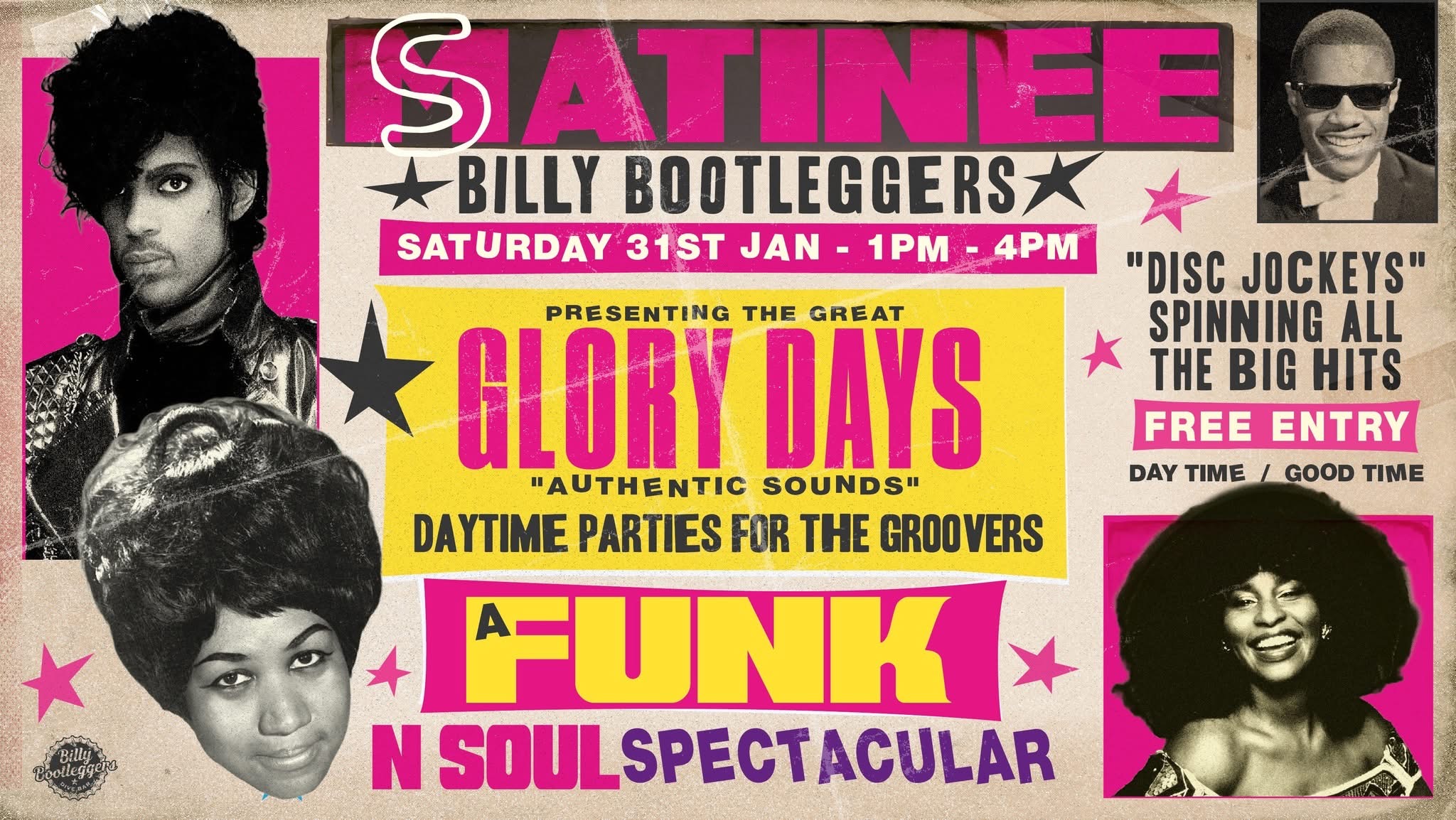 We're taking you back to the Glory Days of music with our Disc Jockeys spinning all the biggest and best funk n soul hits!!