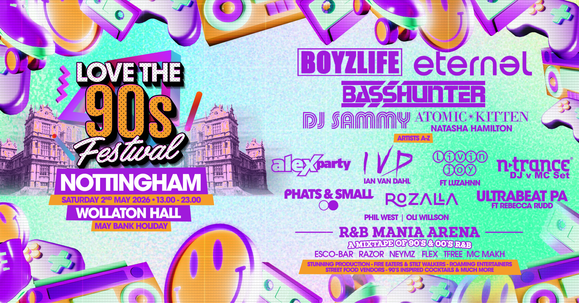 On Saturday 2nd May 2026, Wollaton Park becomes the ultimate throwback playground as Love The 90s Festival brings a huge all-star lineup to the city! 🎉🔥