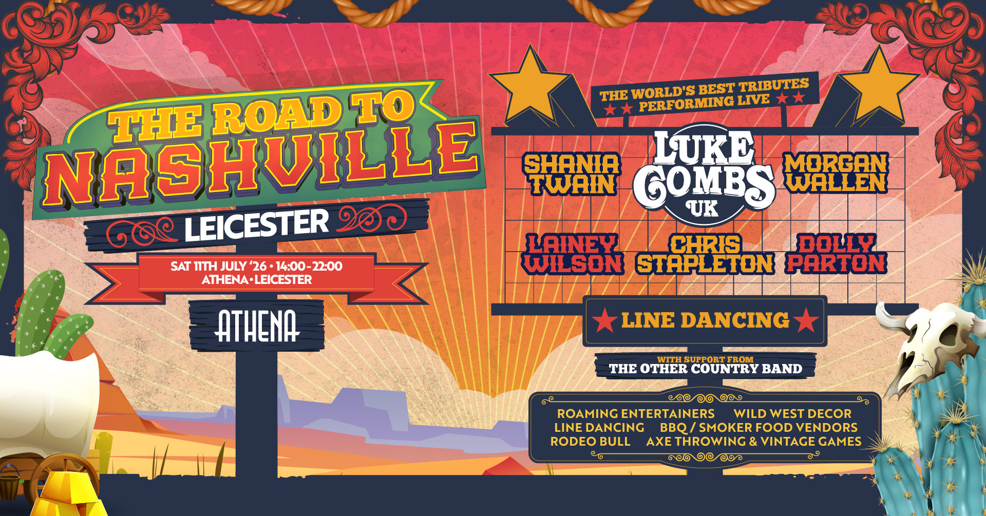 On Saturday 11th July 2026, Athena will be transformed into a high-energy country fest, featuring tributes to Luke Combs UK, Morgan Wallen, Chris Stapleton, Shania Twain, Dolly Parton, and Lainey Wilson. π΅