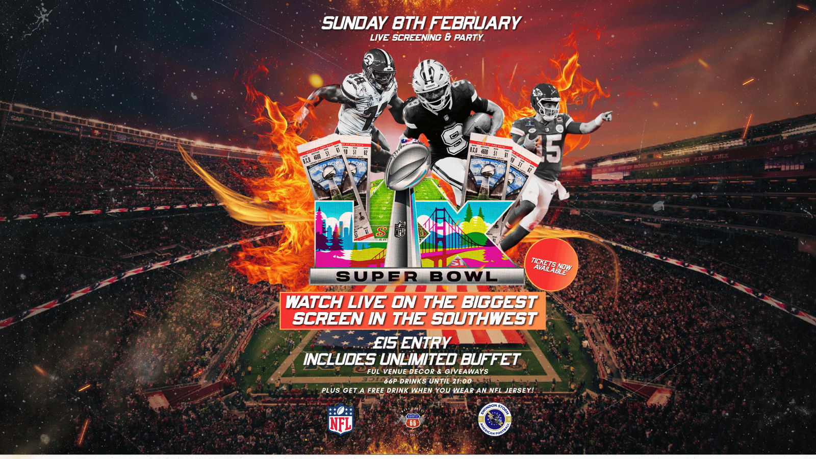 Touchdown at Route 66 for the BIGGEST Super Bowl Party in the Southwest! 🏈