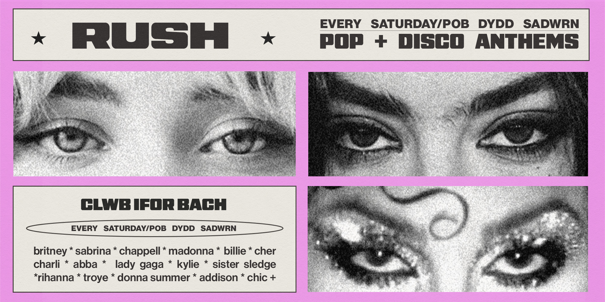 Can you keep up? It's time to sweat it out on the dance floor at Rush - expect high tempo, pop & disco anthems that will keep you dancing till the early hours of Sunday morning.