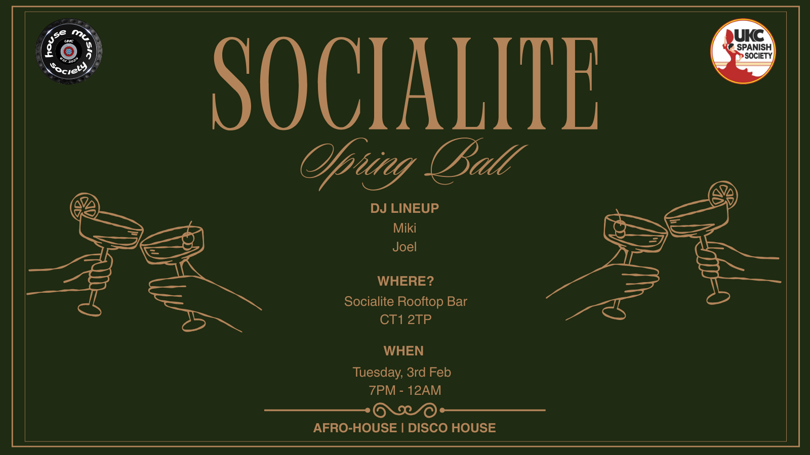 Join us for Afro-House and Disco music from 7pm until 12am on the 3rd of February at the only rooftop in town with our resident SpanishSoc DJ Miki who will be joined by HouseMusicSoc resident Joel 🔥