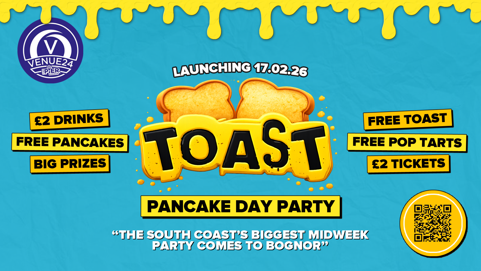 After breaking bread with thousands of people every Tuesday up and down the south coast, we had a look at Tuesday nights in Bognor and thought you deserved butter. So we've teamed up with Venue 24 to bring you the south coasts BIGGEST weekly club night brand 💥