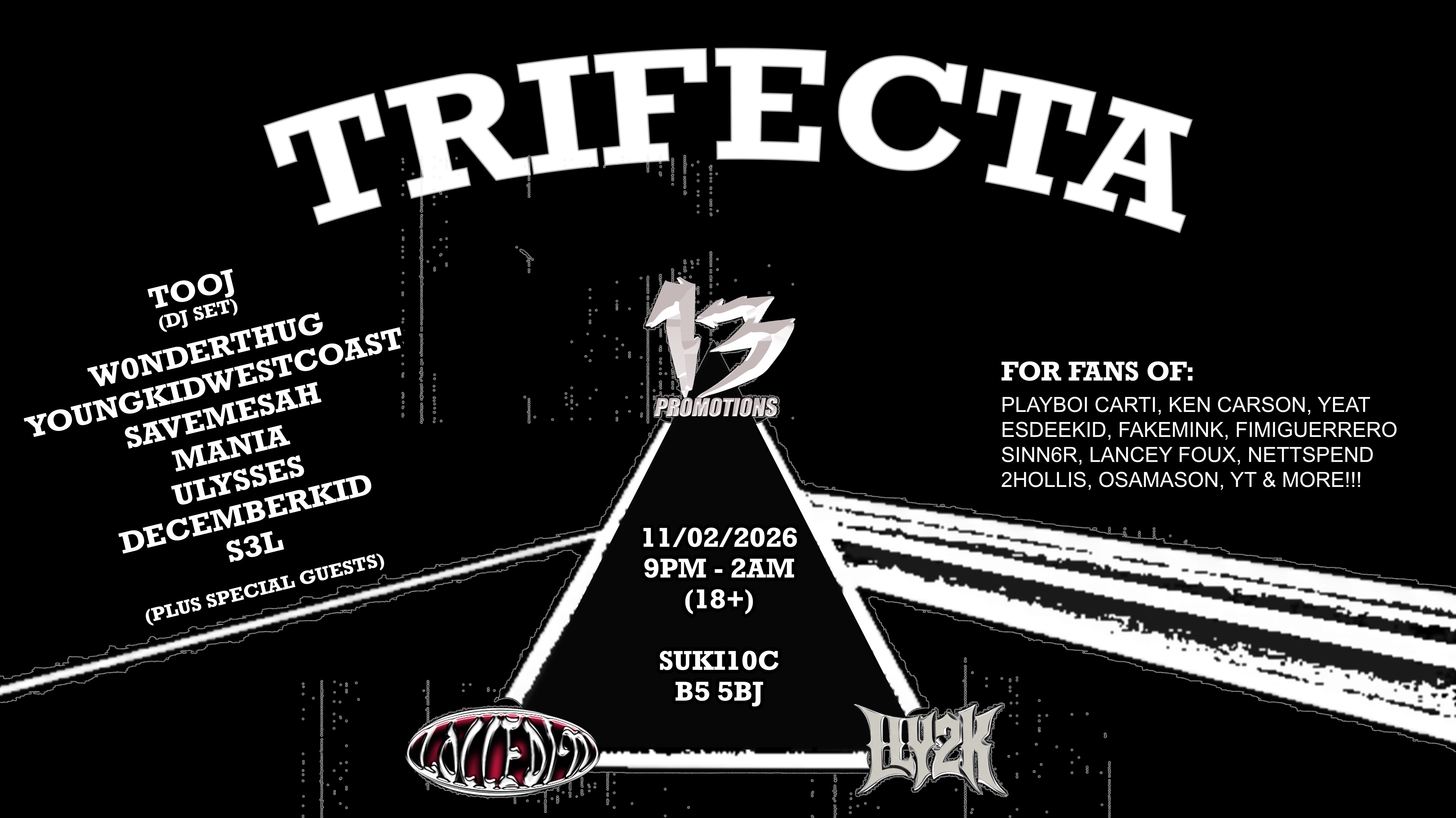 DJ on the night playing music by but not exclusive to: Playboi Carti, Ken Carson, Yeat, EsDeeKid, fakemink, Fimiguerrero, SINN6R, Lancey Foux, Nettspend, 2hollis, OsamaSon, YT, & more of the past and present hits!