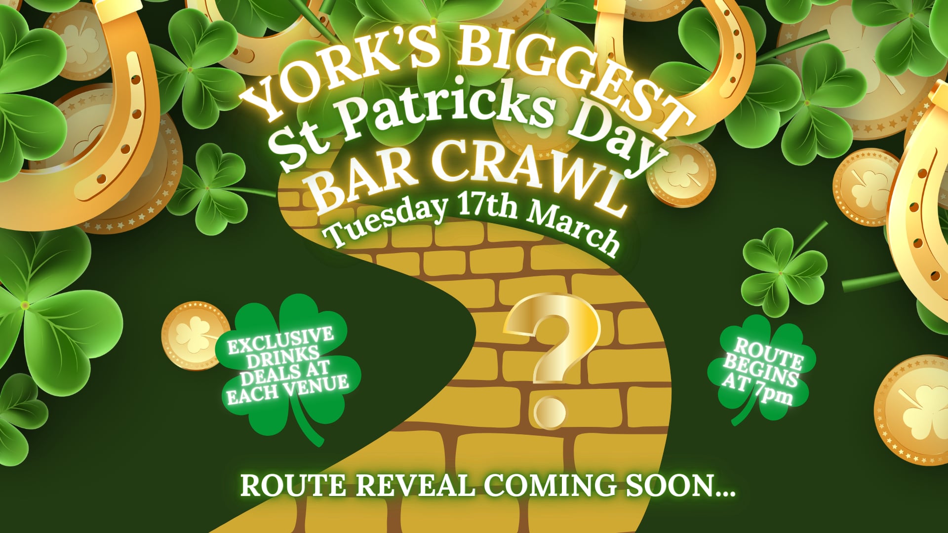 Get ready for Epic Drink Deals. 2000+ Crawlers all across the best venues in town, from 7pm onwards York will be Green and Gold all night long. Whether you’re Irish or just love a good party, this is the only way to celebrate the biggest green holiday of the year! 🍻